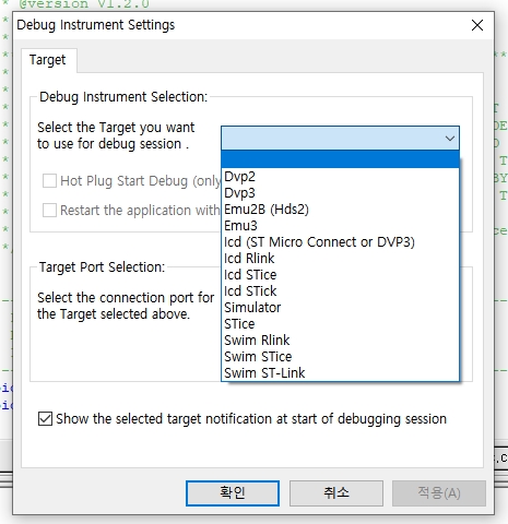 자신이 가지고 있는 툴을 선택 합니다. 아마 대부분의 사람들이 ST를 사용하신다면 아래 Swim Stice 나 Swim ST-Link를 사용하길 겁니다.
